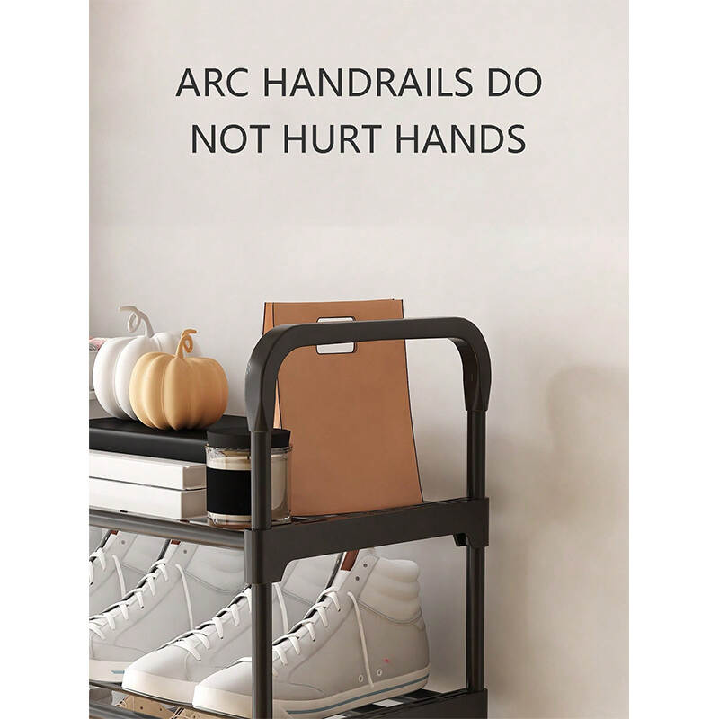 Equipped with smooth arc handles, the shoe rack ensures safe and comfortable handling during movement or repositioning. This thoughtful detail prevents hand injuries and enhances the overall user experience in everyday settings.